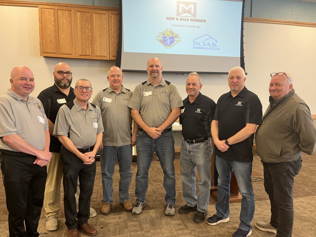 Staff photo / Bob Coupland The sixth annual Men’s Mile Marker gathering was Feb. 28 at St. Blaise Parish-St. Joseph Church in Austintown, where local men heard from guest speakers about keeping right with God. Committee members are, from left, Ernie …